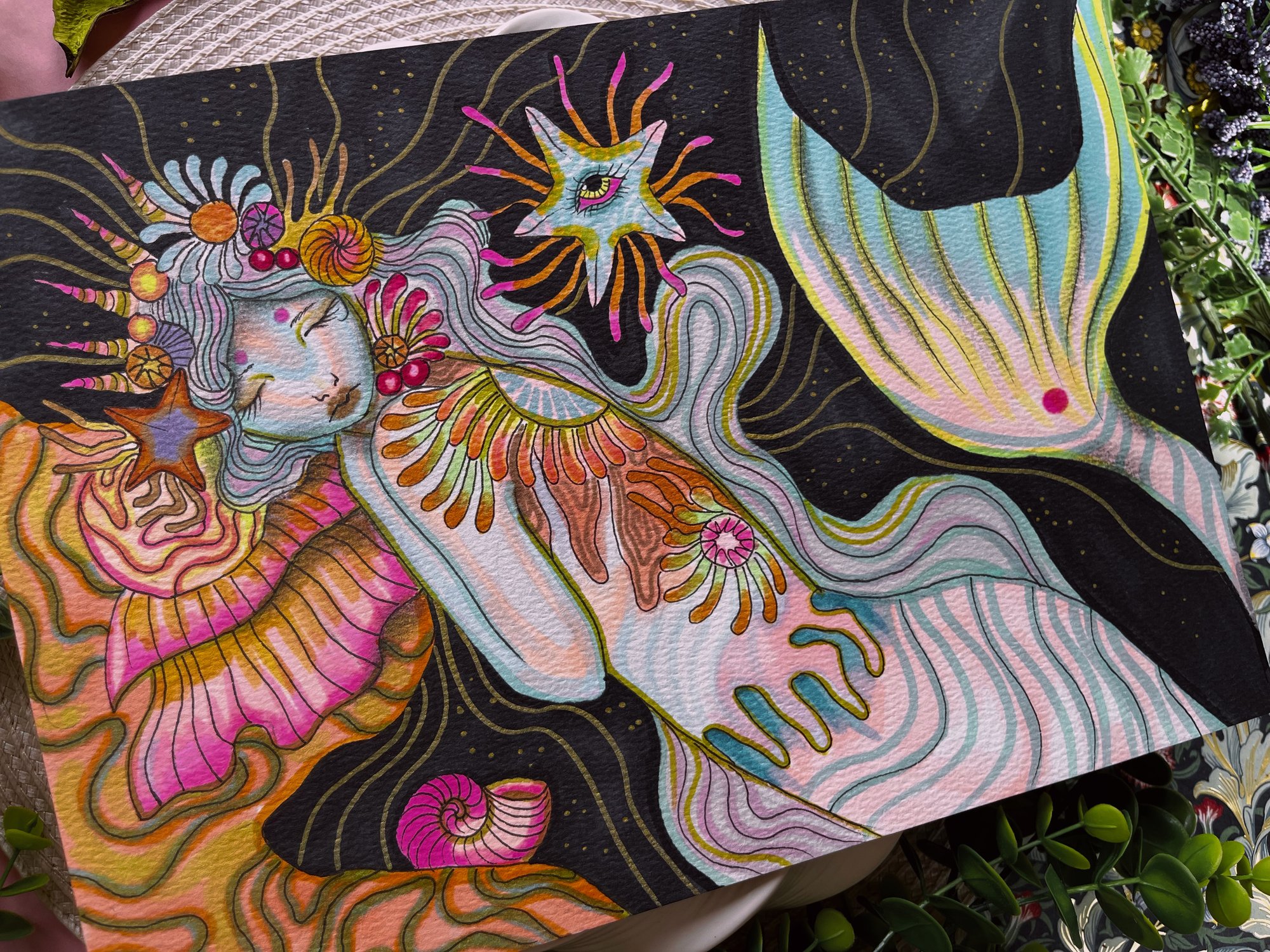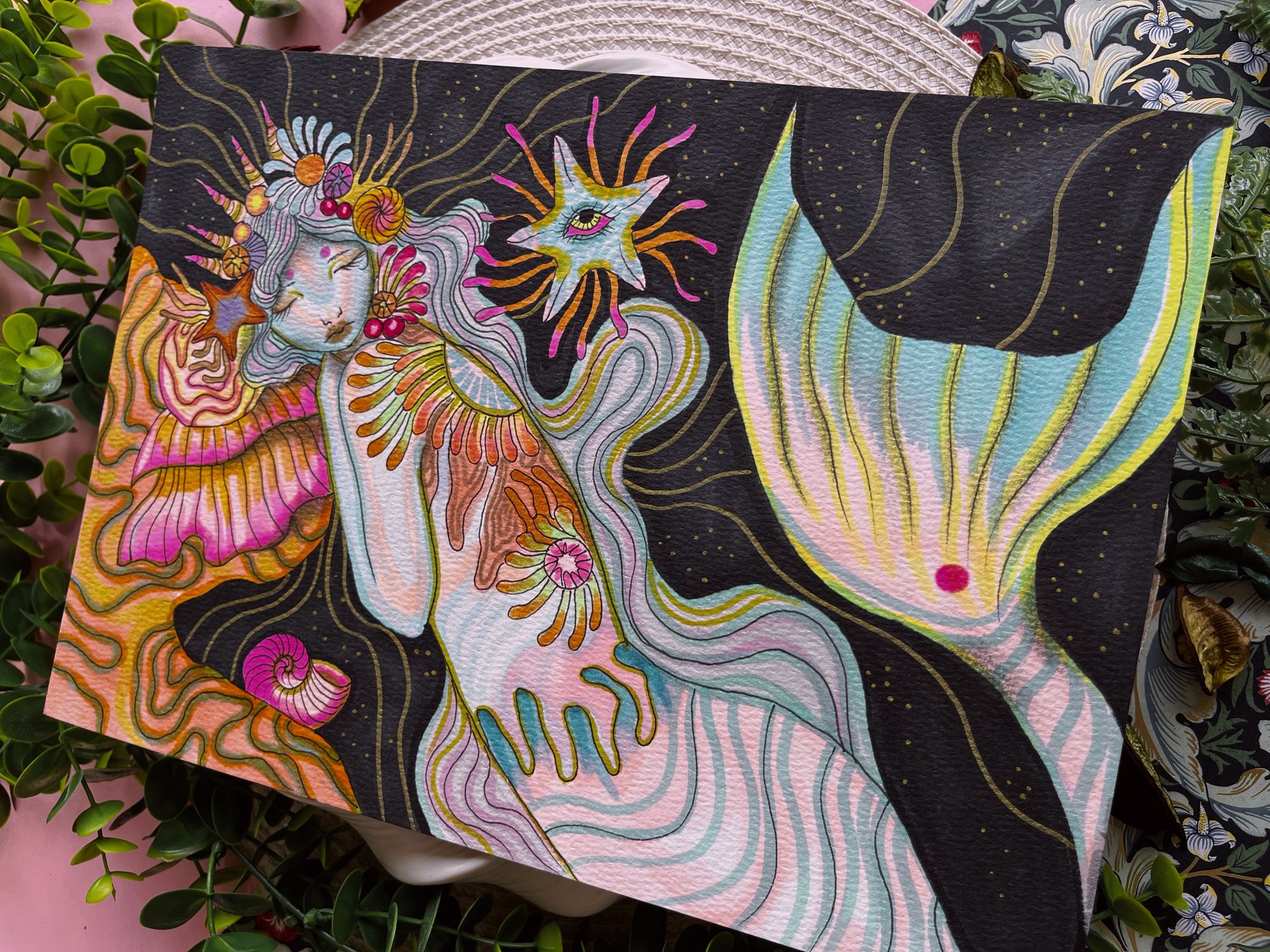 Original mermaid themed illustration on A4 watercolour paper✨