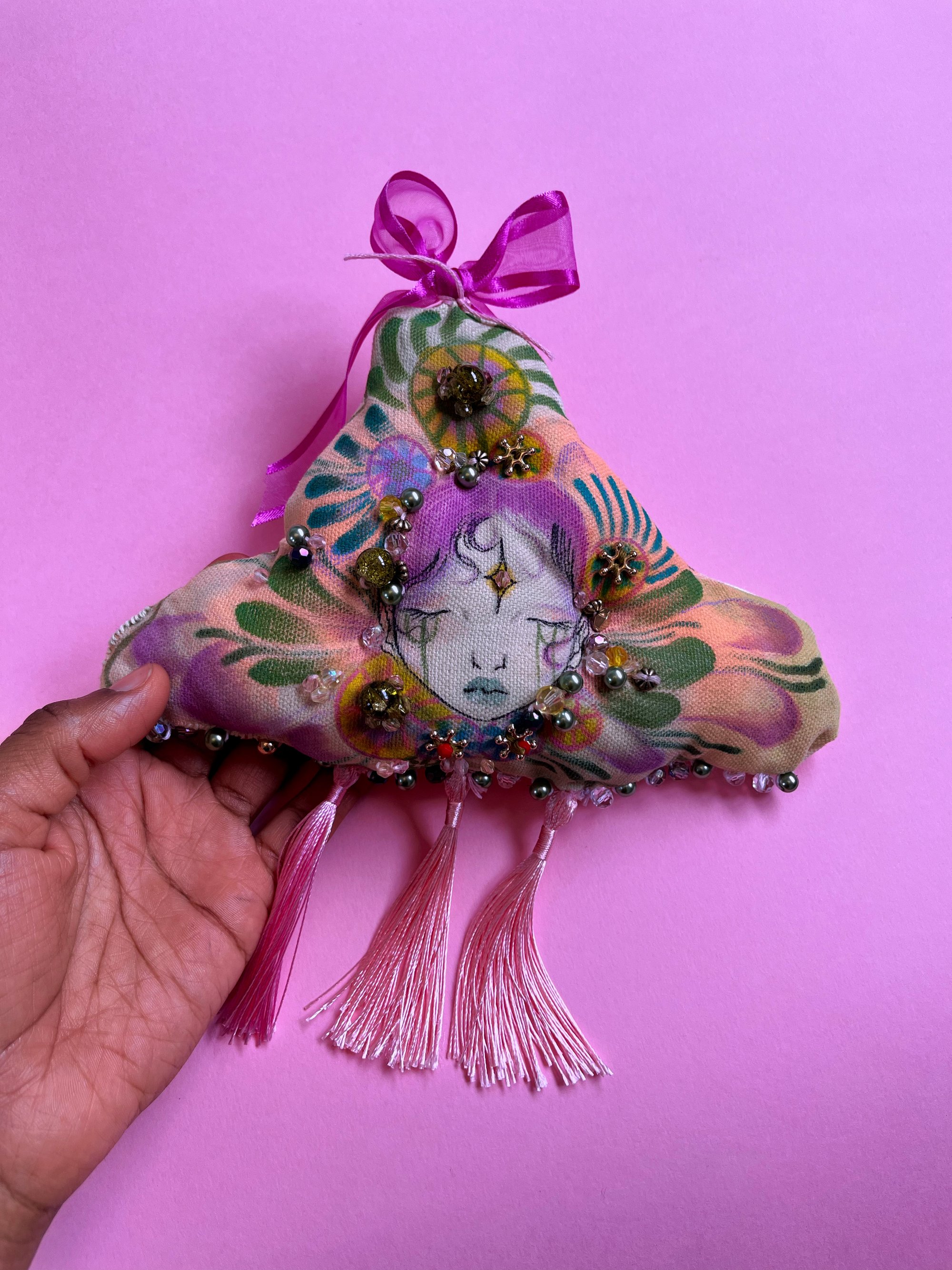 This lovely little piece is made with canvas fabric, alcohol markers, beads and embroidery ✨❤️
