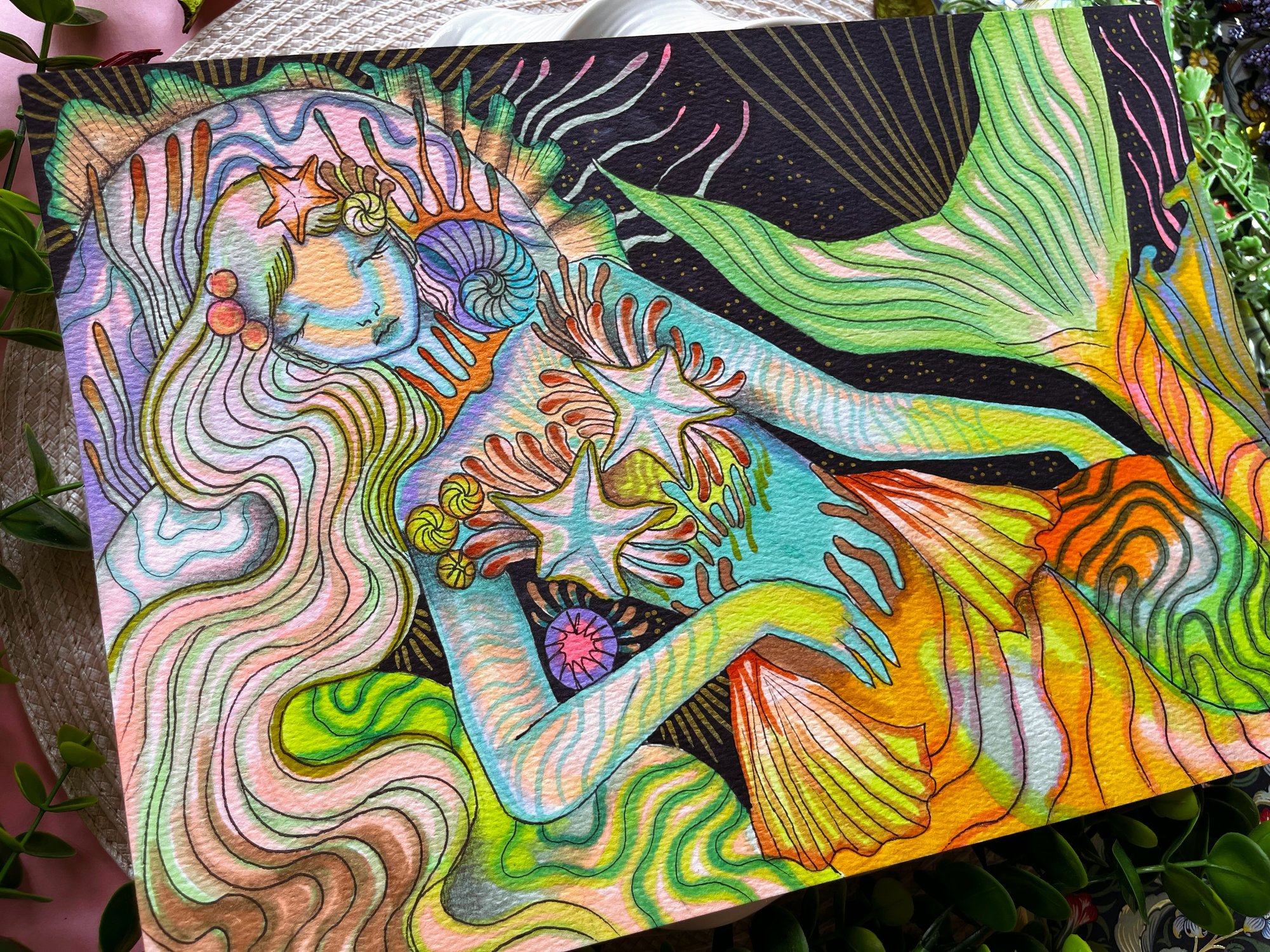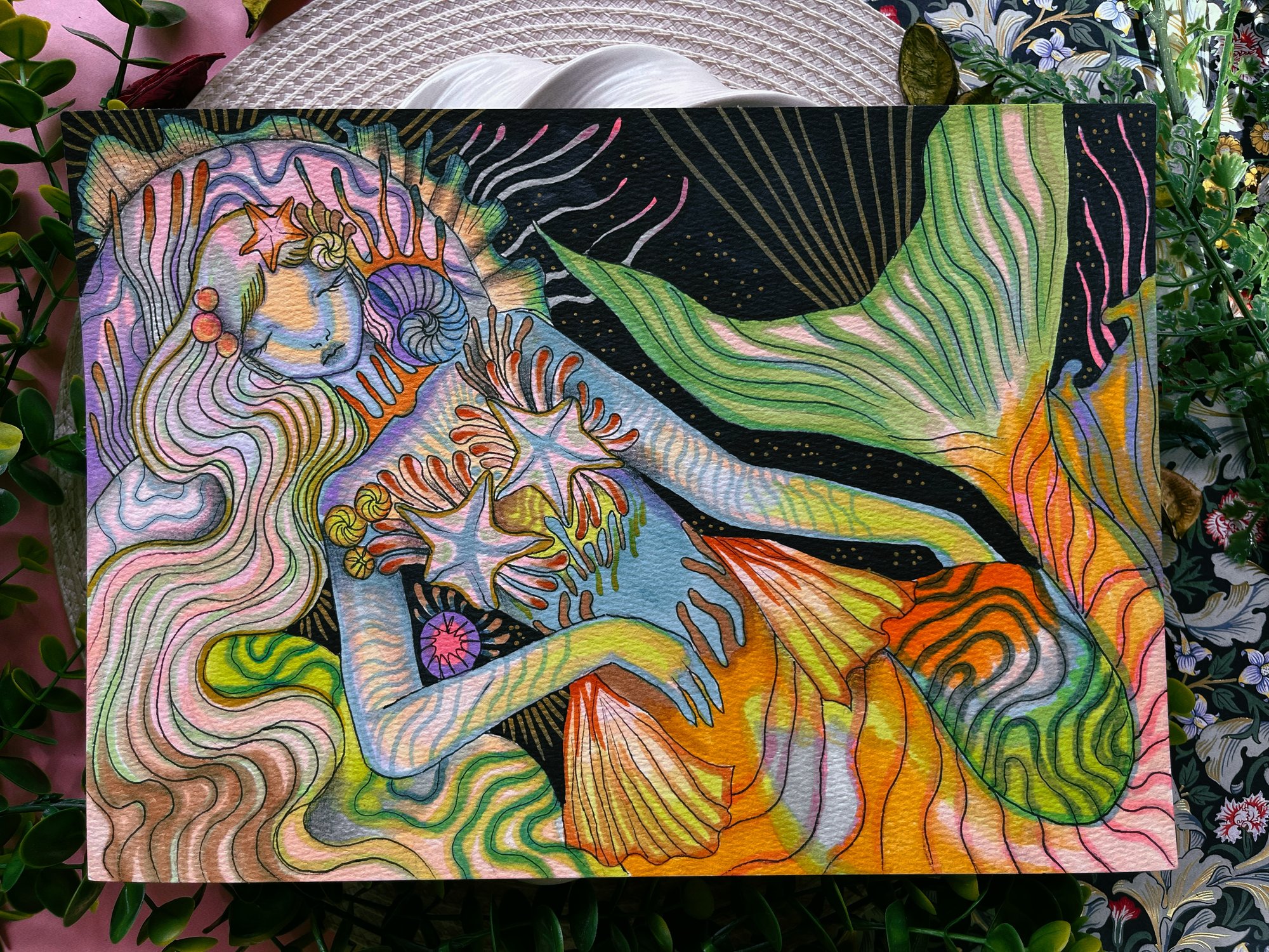 Original mermaid themed illustration on A4 watercolour paper✨